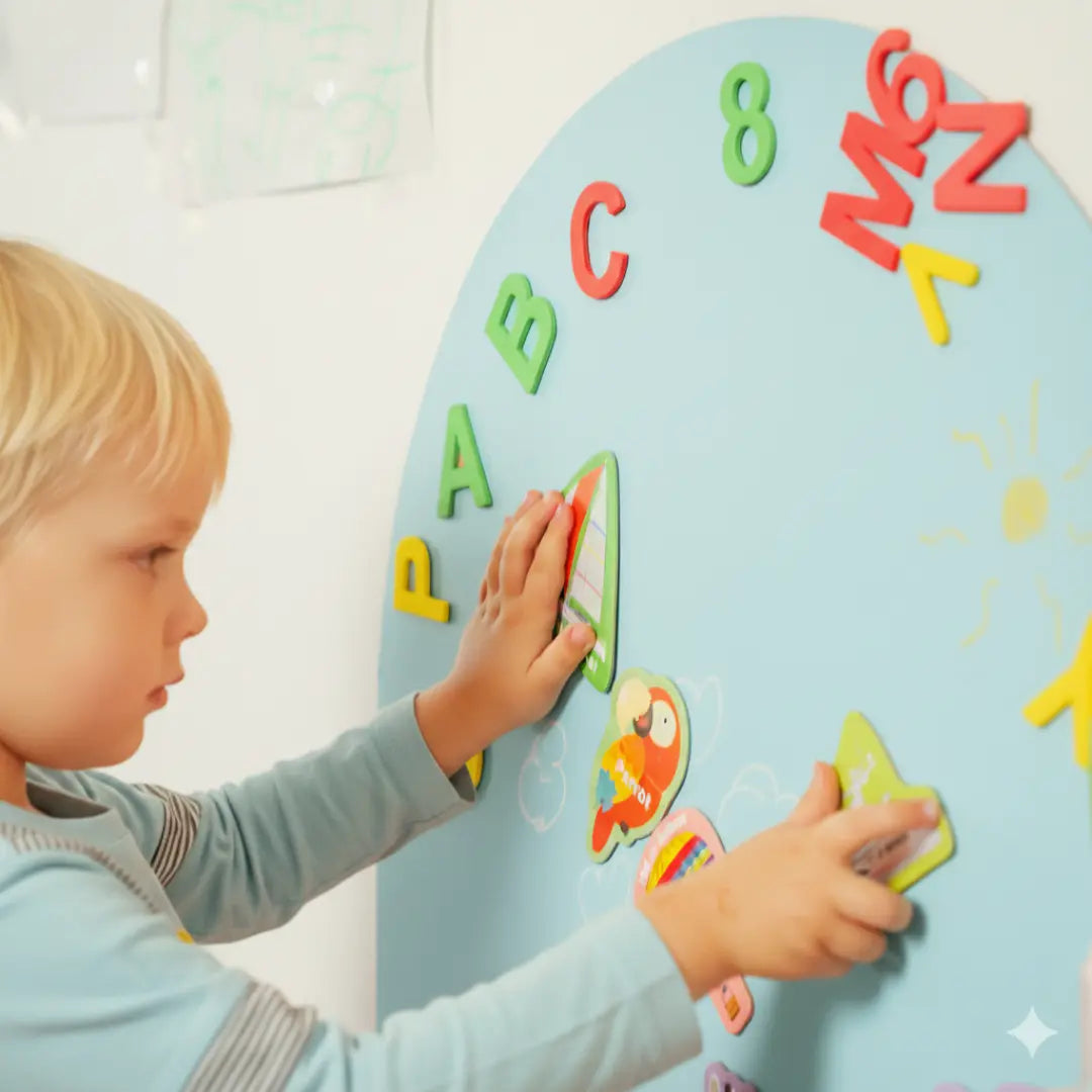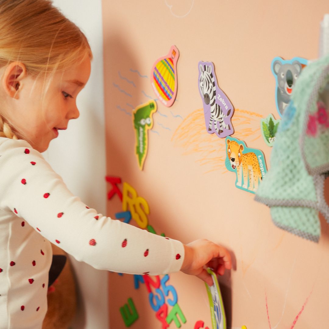 Et sjovt og lærerigt sæt med alt i én løsning – magnettavle, bogstaver, tal, puslespil og farver samlet i én kreativ pakke, klar til at sætte op på få minutter.